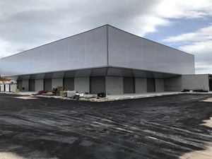 El talud de tierra entre las dos plataformas se ha gunitado de hormigón, para posteriormente instalar césped artificial y mejorar la estética de la zona perimetral del futuro Segundo Pabellón de La Nucía, que abrirá sus puertas durante el primer trimestre de 2021.