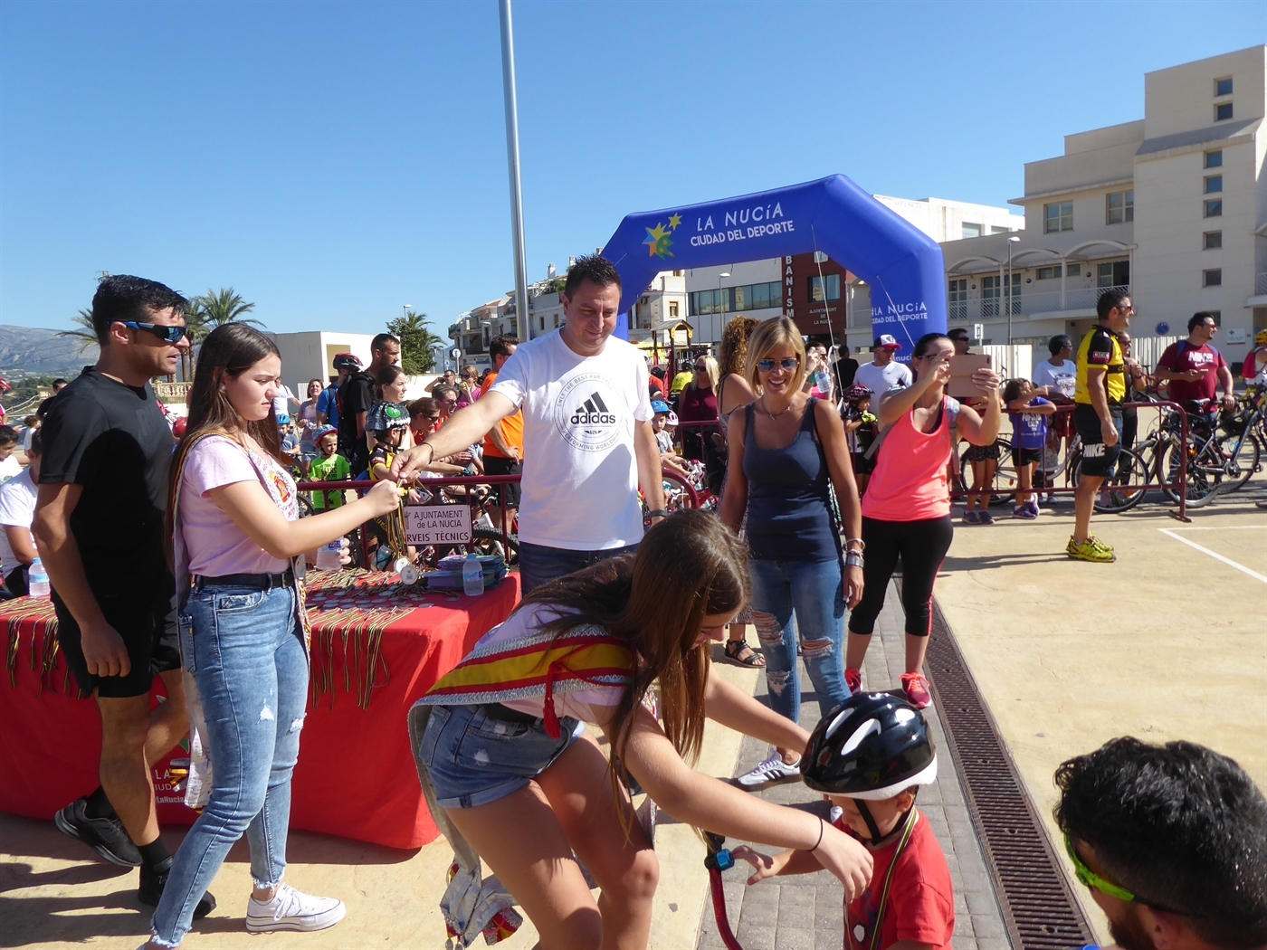 El “VIII Día de la Bici” consiguió su objetivo de fomentar el hábito saludable del ejercicio en familia y el transporte sostenible. Más de 300 ciclistas de todas las edades disfrutaron de pedalear en familia por las calles de La Nucía en una mañana soleada, sin coches y sin humos. La salida y llegada del VIII Día de la Bici estaba en la plaça–Auditori de Les Nits, donde se instalaron arcos de salida y meta, así como castillos hinchables para que los más pequeños disfrutaran de una jornada de deporte en familia.