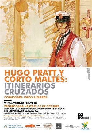 Esta exposición de “Hugo Pratt y Corto Maltés: Itinerarios Cruzados” del MUA y la UA, ha ampliado su plazo expositivo hasta el 10 de octubre, dado su gran aceptación y gran número de visitantes durante todo el verano. Esta muestra sobre el mundo del cómic está siendo muy visitada en la Sala Llevant de l’Auditori de la Mediterrània.