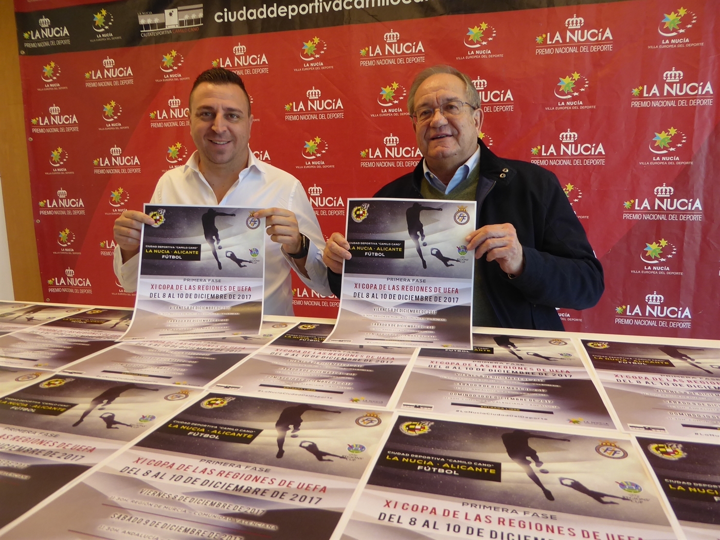 Una de las primeras fases de la Copa de Regiones UEFA en España se desarrollará en la Ciutat Esportiva Camilo Cano de La Nucía. El viernes 8 de diciembre a las 11,30 horas se medirán Región de Murcia vs. Comunidad Valenciana y el sábado 9 de diciembre a las 11,30 horas será el encuentro Andalucía contra Región de Murcia. Cerrará este triangular el domingo 10 de diciembre a las 11,30 horas el encuentro entre Comunidad Valenciana y Murcia. Todos los partidos tendrán entrada libre y gratuita.
