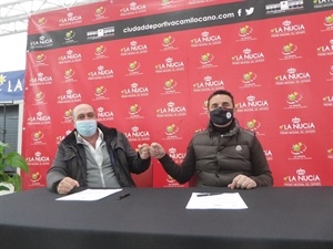 Carlos Ferrís, presidente de la FEMECV, y Bernabé Cano, alcalde de La Nucía han firmado este convenio de colaboración entre las dos instituciones en el Pabellón Muixara de La Nucía. El objetivo de este convenio es promocionar todas las disciplinas de la FEMECV: escalada, senderismo, marcha nórdica, carreras de montaña y montaña inclusiva en “La Nucía, Ciudad del Deporte”, a través de competiciones, formaciones, entrenamientos y jornadas de iniciación. Para ello el consistorio nuciero cederá salas, instalaciones deportivas y la red de senderos a esta federación deportiva autonómica.