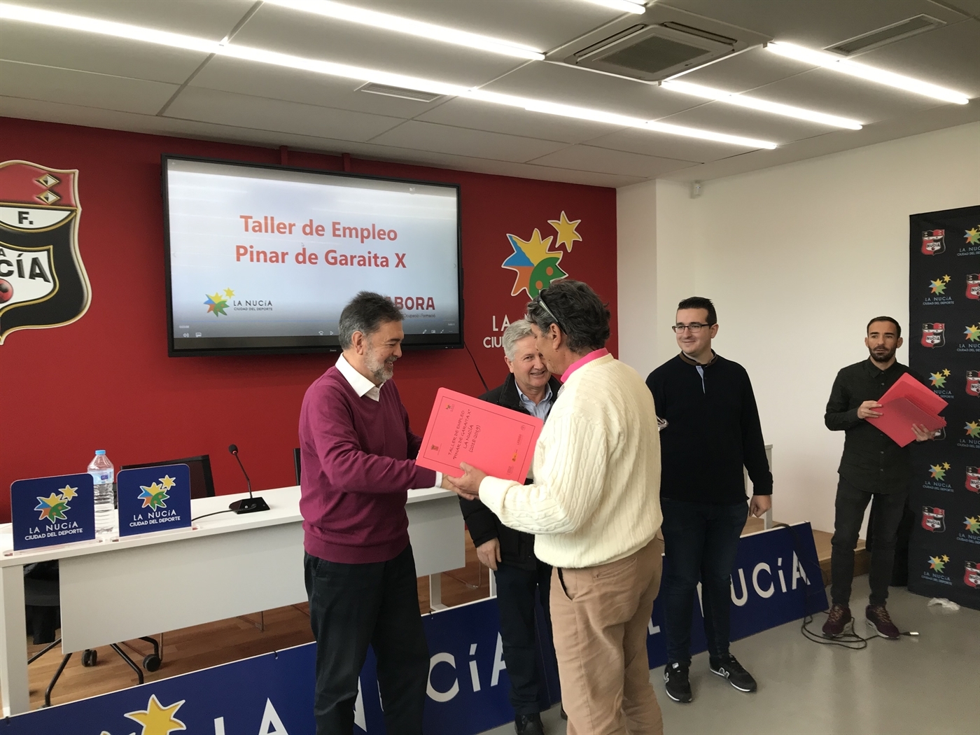El pasado viernes en la sala de prensa del Estadi Olímpic Camilo Cano se realizó el acto de clausura y entrega de diplomas del Taller de Empleo “Pinar de Garaita X”. En el que 20 alumnos desempleados mayores de 25 años se han formado durante doce meses, en las especialidades de jardinería y forestal. Como trabajo de final de curso los alumnos realizaron todo el ajardinamiento y zonas verdes del Estadi Olímpic Camilo Cano y accesos. Los alumnos han recibido un Certificado de Profesionalidad nivel 1 y 2 en Jardinería o Forestal, que facilitará su futura inserción laboral.