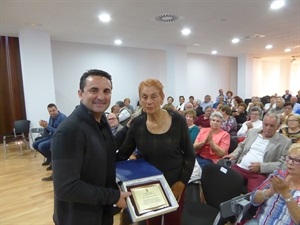 Más de 100 personas llenaron ayer la Sala Ponent de l’Auditori para homenajear y despedir a Mª Teresa García Moreno como presidenta de la Asociación de Jubilados y Pensionistas de La Nucía. Después de 16 años al frente de la entidad, desde su fundación, deja el cargo por salud, “pero seguiré trabajando y colaborando con la Asociación y en la “Casilla”, porque es mi vida y mi pasión”. Se proyectó un pequeño video, repasando los 16 años de actividad de la Asociación y Bernabé Cano, alcalde de La Nucía, entregó placas conmemorativas a las homenajeadas. En el acto también participó Beatriz Pérez-Hickman, concejala de Tercera Edad de La Nucía.