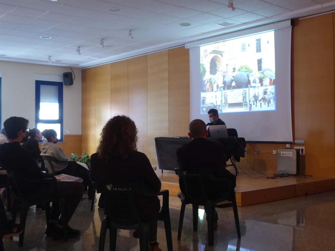 La conferencia comenzó con la exposición de trabajos (Podcast), realizados por los alumnos sobre la figura de la escritora Carmelina Sánchez-Cutillas. Joan Borja, profesor de la Universidad de Alicante, empezó su ponencia haciendo su particular “podcast” de “Matèria de Bretanya”, leyendo el fragmento que más destacaría de la obra referente de la escritora Carmelina Sánchez-Cutillas, para enlazar con los “podcasts” que habían grabado los alumnos de 4º ESO del Instituto de La Nucía.