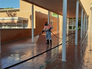 El Ayuntamiento de La Nucía ha realizado esta semana una limpieza y desinfección “intensiva” de los centros educativos del municipio, tanto en su interior como en los patios exteriores y accesos, para el “inicio del curso escolar”. Se han desinfectado las aceras, accesos y patios de los colegios e Instituto de La Nucía y de los Colegios Muixara y Sant Rafel. De esta forma el consistorio nuciero está cumpliendo con las recomendaciones de la Consellería de Educación, para que los centros educativos estén a punto para el “inicio del curso escolar”.
