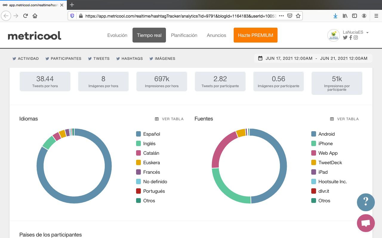 Estas espectaculares cifras de 67 millones de impactos en 38 países, es sólo a través de la red social Twitter, que es la que monitoriza Metricool, a estos números habría que añadir los impactos en otras redes sociales como Instagram o Facebook y en los diferentes medios de comunicación: prensa, radio, televisión y medios online.