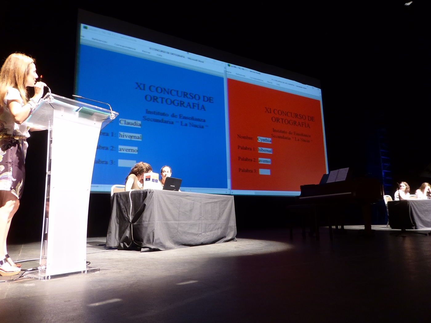 Hoy martes 13 de junio en l’Auditori de la Mediterrània se ha desarrollado la fase final del XI Concurso de Ortografía del Instituto de La Nucía. En él han participado alumnos de 1º, 2º, 3º y 4º de E.S.O. del centro educativo. Las finales han sido muy emocionantes y los ganadores muy aplaudidos por el numeroso público de alumnos que llenaba l’Auditori.
