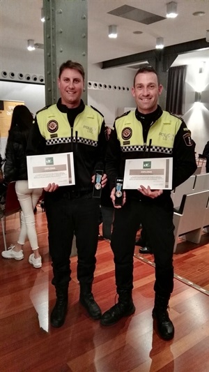 Los dos agentes nucieros, responsables de la Unidad de Protección animal de la Policía Local de La Nucía, han sido premiados a nivel nacional por el REPA “por el trabajo realizado y trayectoria, así como por su implicación en la modificación y aplicación de la Ordenanza de Protección Animal y en el fomento de campañas de Protección Animal”.