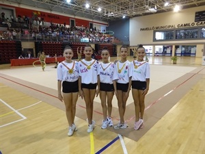 El conjunto infantil nuciero compuesto por las gimnastas Emma Yusupova, Julieta Dobromirova, Tania Juez, Nuria Baeza y María Cerdán, quedó segundo en la fase provincial por lo que llegaba al autonómico en Burjassot, con la “espinita clavada” de no haber subido a lo más alto del pódium en La Nucía. El conjunto infantil del Club Gimnasia Rítmica de La Nucía, dirigido por Sveti Mineva e Ivka Ivanova, en el autonómico realizó el ejercicio de tres pelotas y dos mazas de forma casi perfecta en las dos tandas (13,667 en el primer pase y 14,367 en el segundo pase).