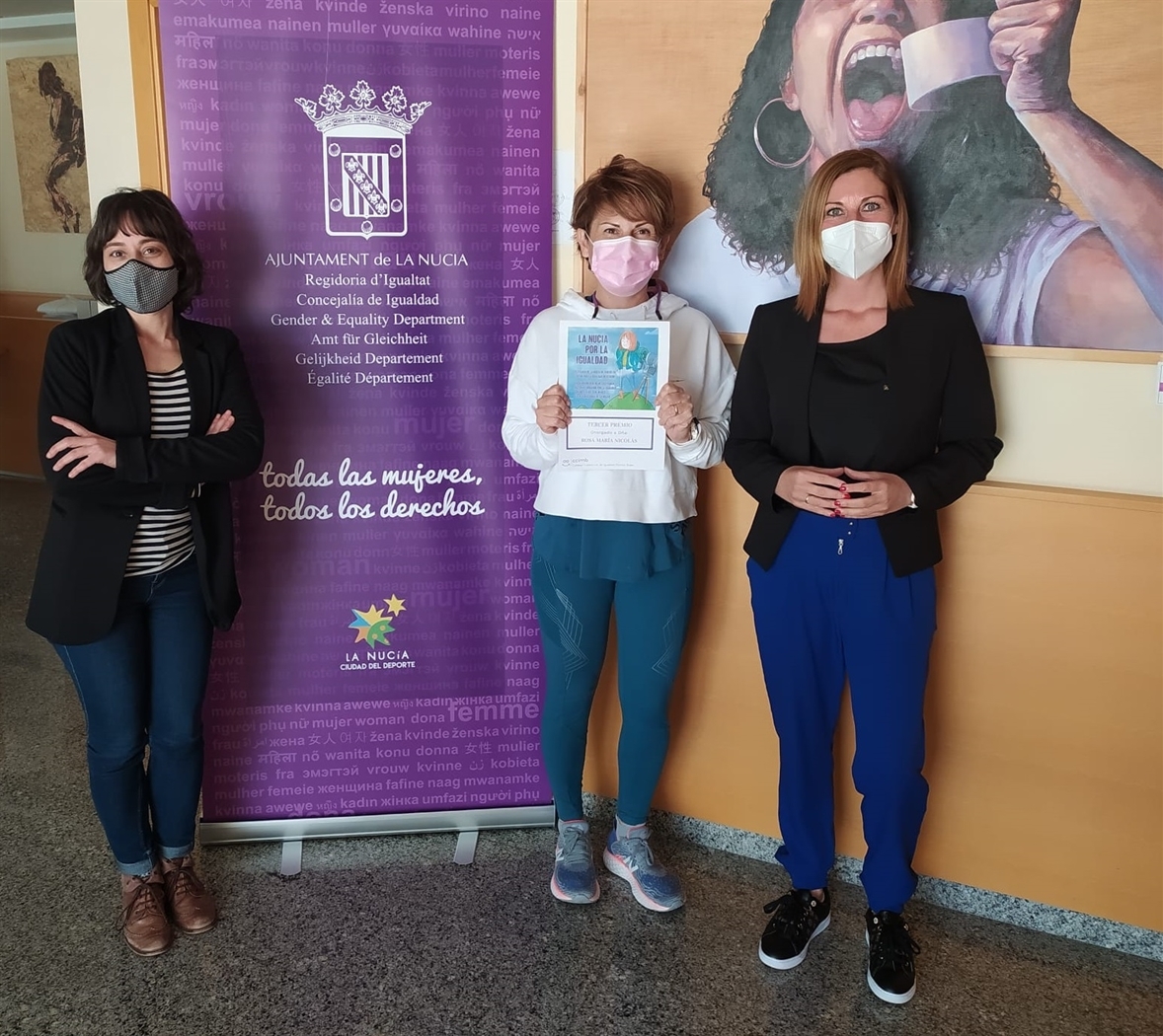 La nuciera Rosa María Nicolás ha ganado el tercer premio del concurso de Tik Tok ‘Marina Baixa por la igualdad’ con un vídeo en el que denuncia los “etiquetajes y roles chico/chica” inducidos por la familia. Esta mañana Cari Rodríguez, técnica de Igualdad y Gemma Márquez, concejala de Igualdad y Políticas Inclusivas han felicitado a Rosa María Nicolás por este premio y por su video con el que competirá ahora a nivel nacional, en el certamen “Rodando por la Igualdad”.