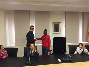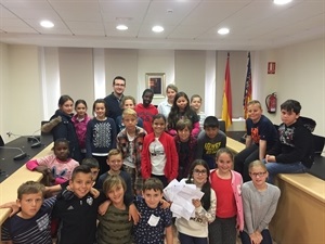 Los alumnos de 5ºA del Colegio Muixara fueron recibidos por Pepe Cano, concejal de participación Ciudadana, a quienes formularon diferentes preguntas sobre el funcionamiento del Ayuntamiento y el pleno. Durante unas horas La Nucía tuvo como “alcaldesa” a la alumna de 5º A Astou Niang Diop, que dirigió el pleno municipal escolar de esta mañana.