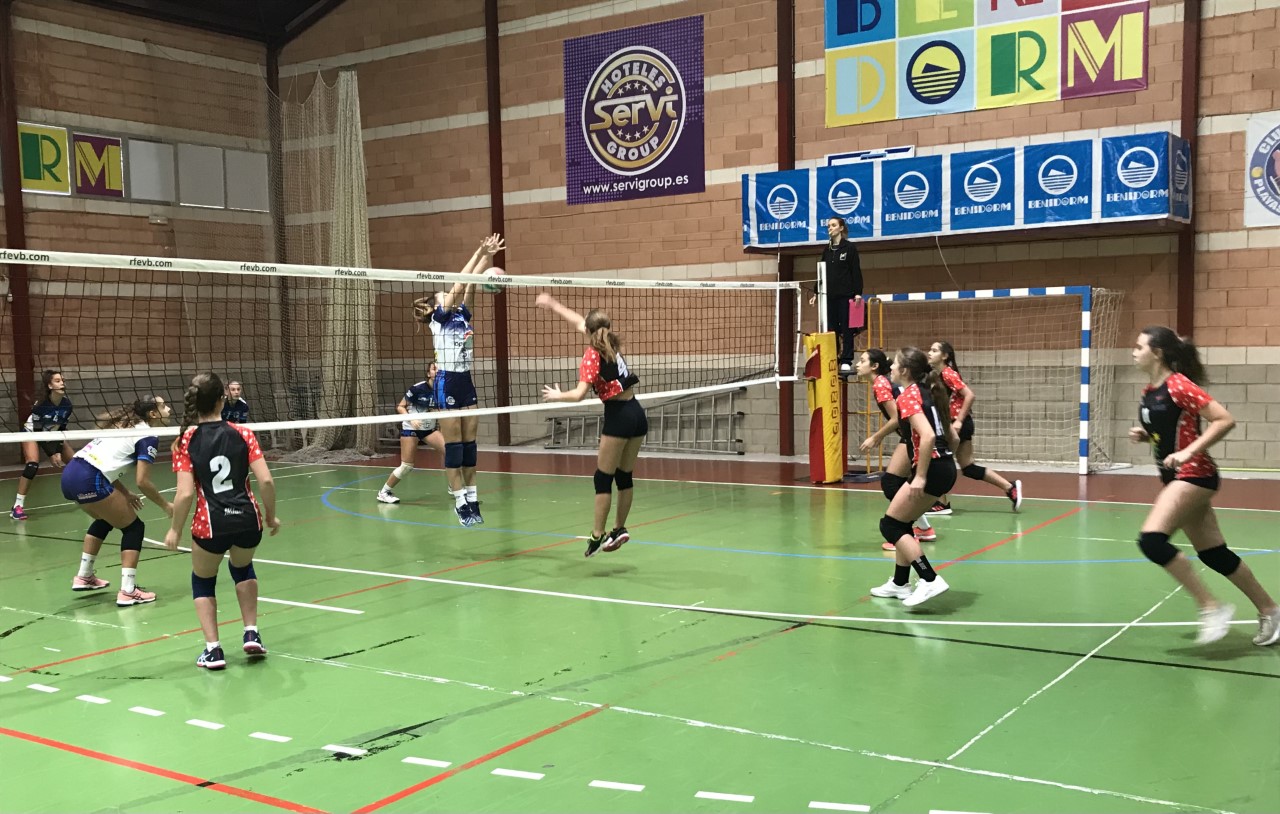 El equipo cadete “preferente” del Club Voleibol La Nucía cayó ante el Servigroup Benidorm por 3-0 (25-13, 25-15 y 25-16), a domicilio. El conjunto benidormense mostró una clara superioridad durante todo el encuentro. Las chicas de Marcelo Mussi no pudieron sacar un mejor resultado ante el mayor poderío ofensivo de un conjunto local que controló todas las facetas del juego.