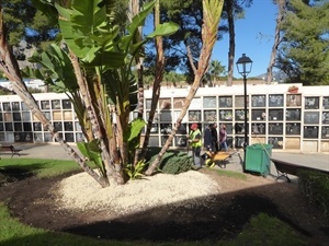 Los servicios técnicos municipales del Ayuntamiento de La Nucía han realizado una importante actuación en la jardinería del cementerio y sus exteriores. Estas actuaciones han supuesto una inversión municipal de 3.000 euros. A su vez se ha realizado una limpieza a fondo del cementerio municipal y mejorado todos los parterres. Se ha engalanado con plantas todo el vial de acceso al cementerio municipal. También se han mejorado varios desagües y conducciones de este recinto municipal.