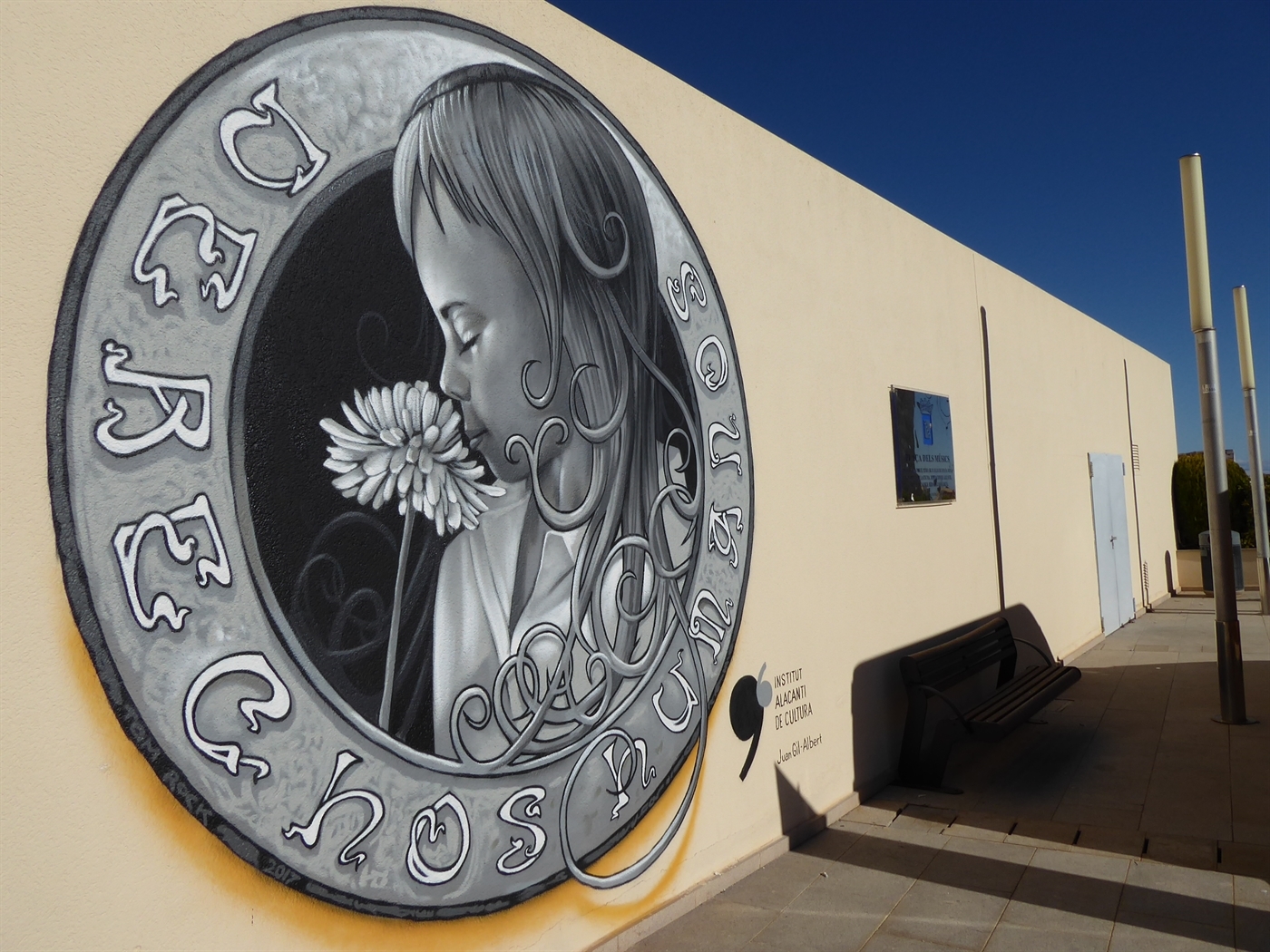 Ayer domingo 17 de diciembre a mediodíael artista Tom Rock finalizó un gran mural sobre los “Derechos Humanos” con la técnica de grafiti, en una de las paredes de la plaça dels Músics de La Nucía. Para inaugurar este mural de arte urbano, patrocinado por el Instituto Alicantino de Cultura Juan Gil-Albert de la Diputación de Alicante, actuaron un grupo de alumnos y la “banda juvenil” de l’Escola de Música de la Unió Musical de La Nucía.