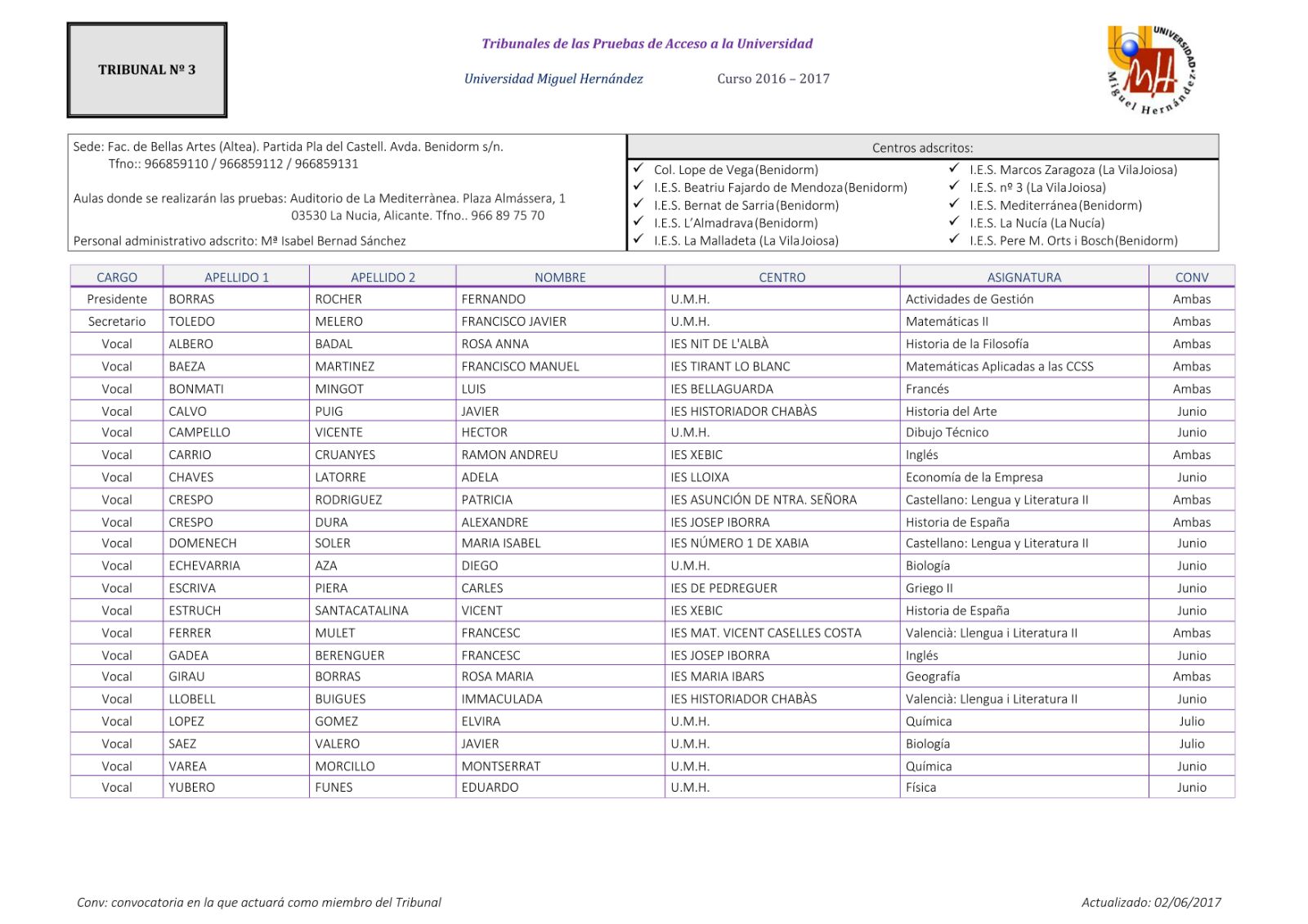 Al no poder realizarse en centros educativos La Nucía ofertó sus edificios culturales y universitarios a la Universidad Miguel Hernández de Elche, que es la que coordina la Selectividad en la zona, quien tras evaluar los espacios nucieros (Auditori y Seu Universitària) y el parking gratuito cercano, eligió La Nucía como sede del Tribunal nº3 de Selectividad 2017.