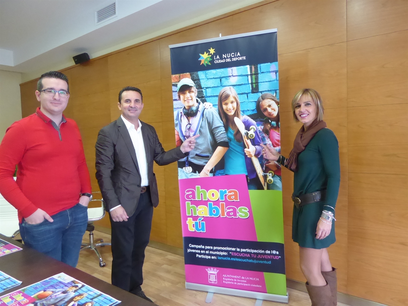 En la presentación de la Campaña “Ahora hablas tú” han participado esta mañana Mª Jesús Jumilla, concejala de Juventud, Pepe Cano, concejal de Participación Ciudadana y Bernabé Cano, alcalde de La Nucía.