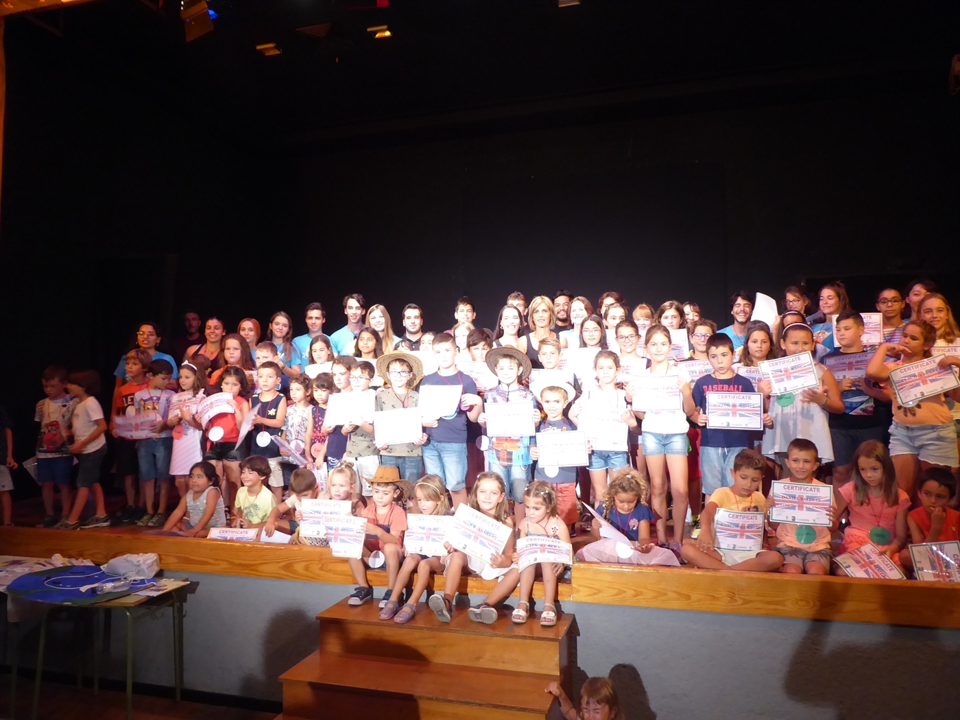En este “Festival Internacional” en El Sindicat las seis clases mostraron al público asistente todo lo que en el “Campus de Inglés” a través de canciones y pequeñas actuaciones. Al finalizar el festival todos los participantes recibieron un diploma que acreditó su paso por este Campus de Inglés y que fue entregado por Mª Jesús Jumilla, concejala de Juventud de La Nucía.