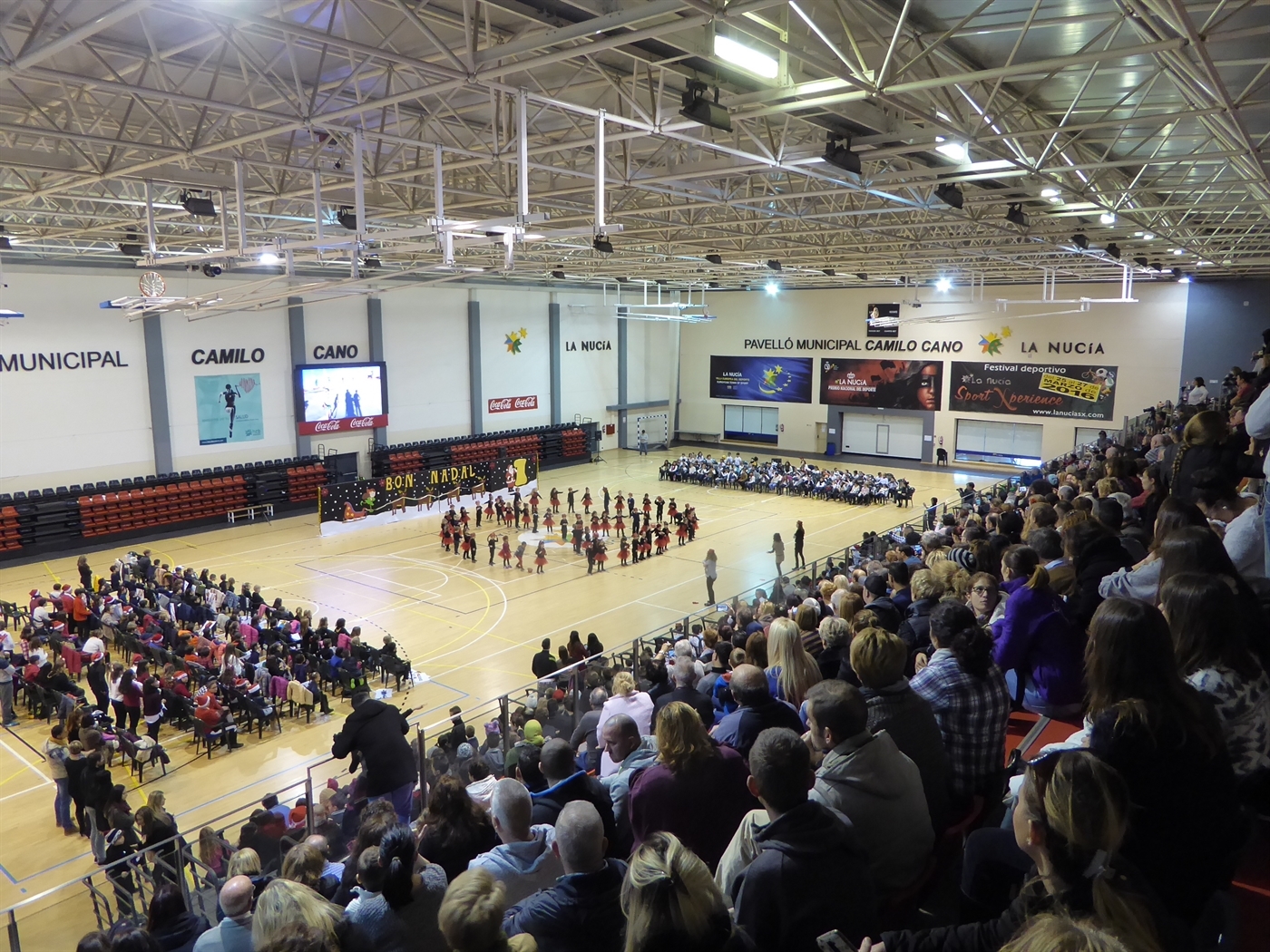 Desde los alumnos de infantil de 3 años hasta los alumnos de sexto de Primaria de 12 años han pasado por la pista central del Pabellón para realizar su baile o actuación del Festival de Navidad 2016 del Colegio La Muixara de La Nucía. El Festival ha contado con 9 actuaciones una por nivel educativo (3 en infantil y 6 en primaria). Desde la dirección del centro educativo se opta por el Pabellón para que puedan asistir todos los padres, madres y familiares sin problemas de capacidad. Entre padres, madres y familiares se han reunido en las gradas del Pabellón Municipal de Deportes de La Nucía cerca de 2.000 personas.