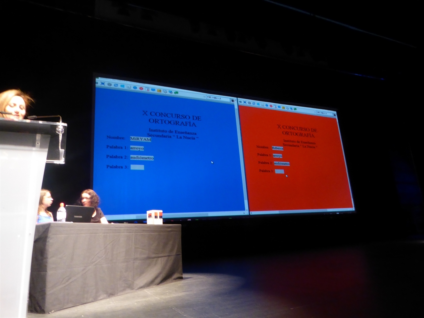 Los 16 finalistas (4 por curso) disputaron hoy a Final del X Concurso de Ortografía del Instituto de La Nucía. El concurso es simple consiste en el dictado de grupos de 2 palabras y los alumnos van siendo eliminados si fallan en la escritura de alguna de ellas. El Concurso ha levantado una gran expectación en el Instituto, de hecho en la gran final había más de 200 alumnos en l’Auditori para ver quien eran los ganadores de cada curso.