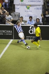 20 jun.2009 EL BARCELONA ALCANZA LA FINAL TRAS VENCER 8-5 A LA REAL SOCIEDAD <strong>El Futbol Club Barcelona logró el segundo billete para la final de la COPA DE ESPAÑA DE FUTBOL INDOOR tras tener que trabajarse muchísimo la victoria (8-5) ante una Real Sociedad </strong>que no desistió en ningún momento de su empeño de ser finalista copero. Los azulgrana podrían conseguir el segundo doblete del FUTBOL INDOOR tras el logrado por el Deportivo la pasada temporada.