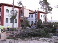 La Seu Universitària, l’Auditori de la Mediterrània, edificio de Urbanismo, jardines, parques, jardones y Colegio nº2 son algunos de los edificios públicos afectados por el temporal de viento de ayer sábado 4 de enero. Además de avivar el fuego del incendio las fuertes rachas de vientos crearon bastantes destrozos en edificios públicos y privados, casas y jardines de todo el término municipal de La Nucía