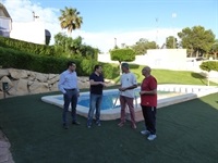 07 jun.2016 La Urbanización Villaflores reutiliza el "antiguo césped artificial" en la zona de la piscina Esta semana Bernabé Cano, alcalde de La Nucía visitó la Urbanización Villaflores para ver como había quedado el césped artificial donado por el Ayuntamiento de La Nucía en el entorno de la piscina de esta zona residencial