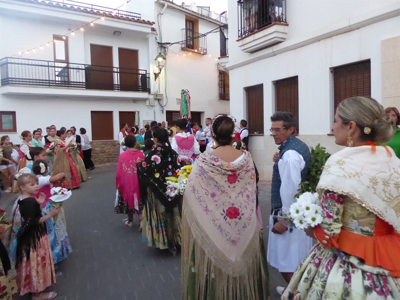 Como cada 16 de agosto, los festeros y festeras de La Nucía se han reunido en el Llavador, en la Plaça Sant Antonio, con sus trajes típicos de “nucier i nuciera” para participar en la tradicional Ofrenda de flores en honor a la “Mare de Déu de l’Assumpció”. La ofrenda ha partido del Llavador en la plaça Sant Antoni para finalizar en la iglesia de La Nucía con la entrega de las flores a la imagen de la virgen de agosto.