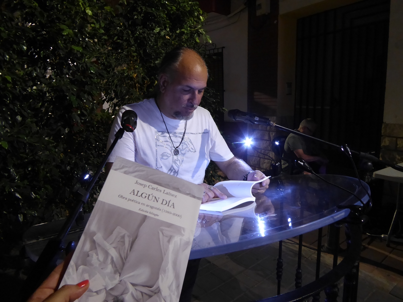 Josep Carles Laínez narró a través de su poesía su pasión por el aragonés y especialmente por su dialecto materno el castellanoaragonés, aderezando la lectura de parte de su poemario con vivencias personales de su infancia y juventud en la comarca de l´Alt Palància, lugar de nacimiento.