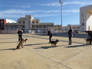 El “Curso de reciclaje y Certificación anual 2019” de Guías Caninos y Perros Detectores Pasivos de drogas y sustancias estupefacientes para los Cuerpos de la Policía Local ha comenzado esta mañana en la Sala Ponent de l´Auditori de la Mediterrània de La Nucía. Esta formación en la que participan 42 guías caninos y 60 perros se impartirá desde hoy martes hasta el viernes 13 de diciembre y constará de formaciones prácticas y teóricas.
