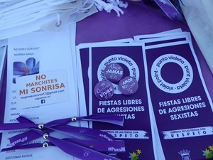 Durante el pasado sábado 9 de marzo más de 250 mujeres y hombres se acercaron al “Punto Violeta”, que informó y sensibilizó contra las agresiones sexistas. A pesar de ser novedad levantó un gran interés por parte de los festeros y festeras, que reafirmaron el slogan “unas fiestas libres de agresiones sexistas". En esta mesa informativa se hizo entrega también de material: chapas, lazos y mochilas reivindicativas de “La Nucía contra la Violencia de Género” editados por la Concejalía de Igualdad, gracias a la subvención del Ministerio de Igualdad del Gobierno de España dentro del programa “Pacto de Estado contra la Violencia de Género”.