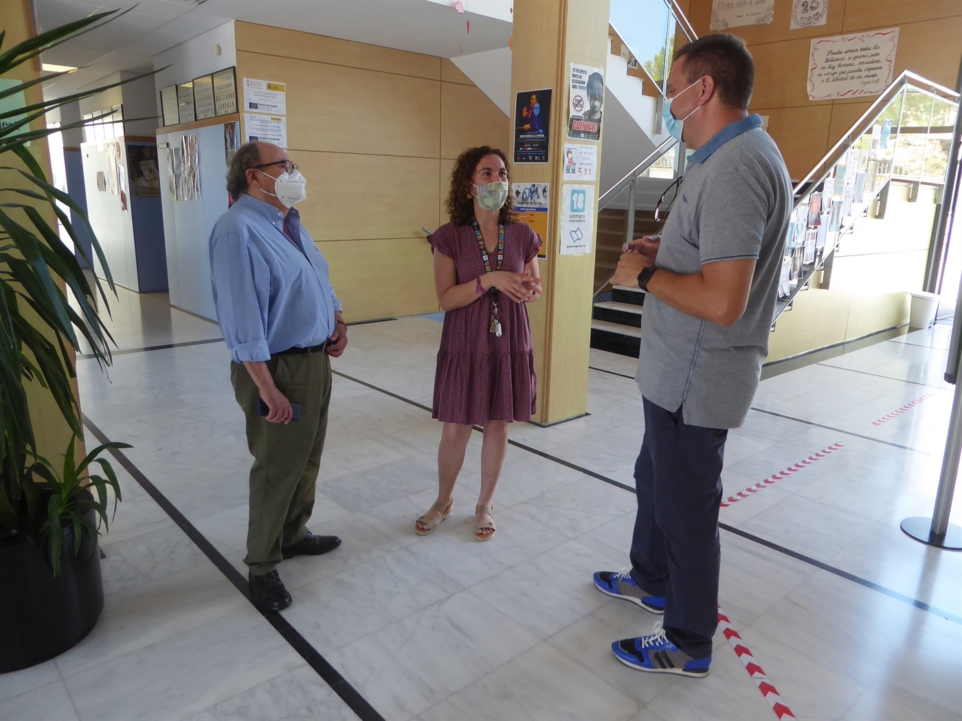 Esta mañana Sergio Villaba, concejal de Educación y Pedro Lloret han visitado el Instituto de La Nucía acompañados por Empar Gadea, directora del IES La Nucía.